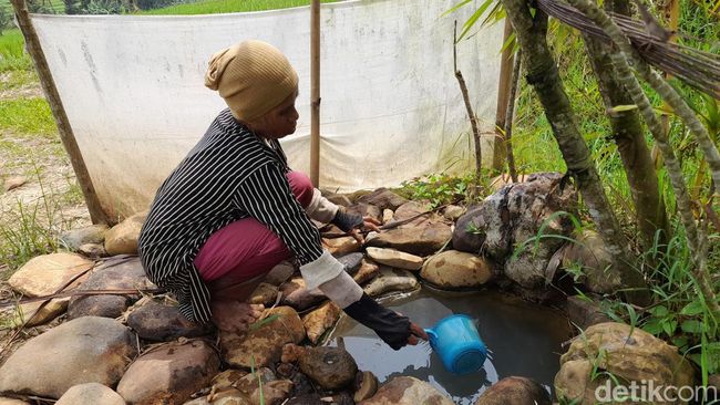 Fenomena alam unik terjadi di Blok Ciseupan atau antara Desa Ciuyah dan Desa Cisarua, Kecamatan Cisarua, Kabupaten Sumedang. Di sana terdapat sumber mata air yang memiliki rasa asin. (Foto: Nur Azis/detikJabar