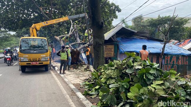 Kala Gergaji Mesin Petugas Beradu dengan Pohon Tumbang di Bandung