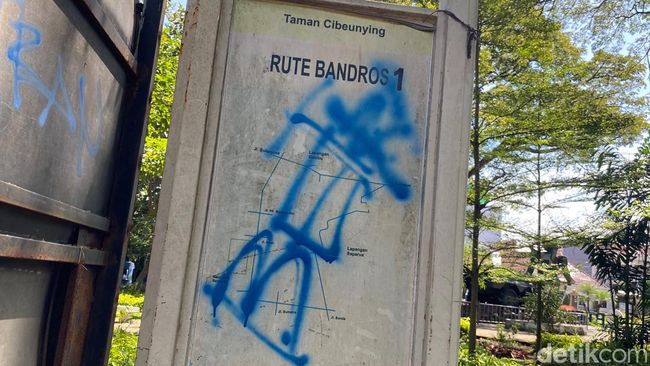 Bandung - Fasilitas di salah satu Taman tematik di Kota Bandung yakni Taman Cibeunying yang berada di Cihapit, Bandung Wetan alami kerusakan karena ulah tangan jahil.