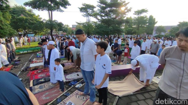 Ciamis - Ribuan warga Tatar Galuh Ciamis antusias melaksanakan Salat Idul Fitri di Taman Raflesia Ciamis, Sabtu (22/4/2023).