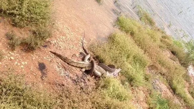 Queensland - Momen mengerikan pertarungan sengit dua predator ular vs buaya terbidik kamera. Keduanya sama kuat.