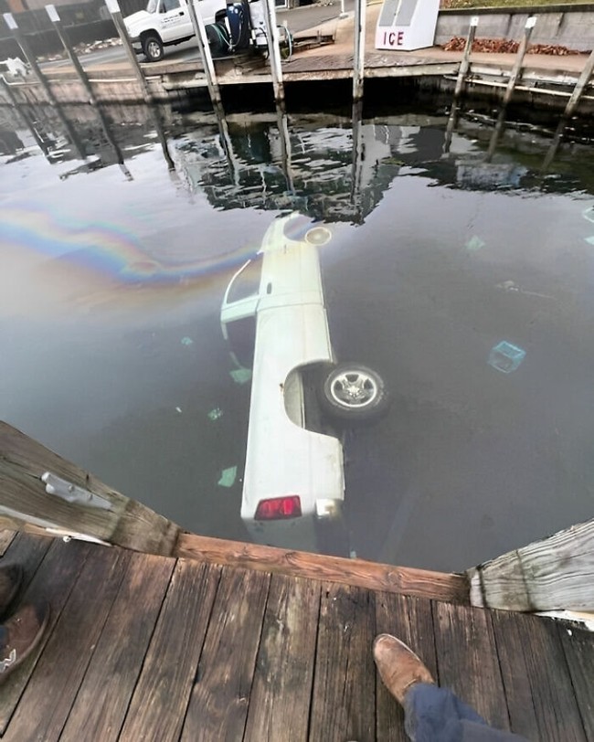 Bagaimana mungkin mobil nyempulng di sungai dengan posisi pagar yang rapat tanpa terlihat ada kerusakan ? (Foto: Bored Panda)