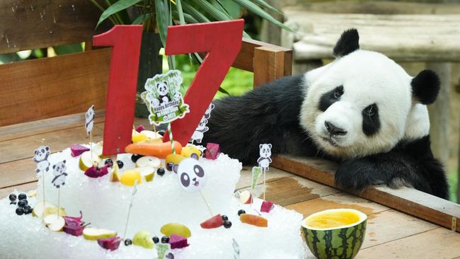 Jakarta - Xing Xing dan Liang Liang sedang berbahagia. Pasangan panda raksasa itu berulang tahun ke-17 dan dirayakan di Kebun Binatang Nasional di Kuala Lumpur, Malaysia.