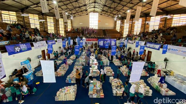 Bandung - Ratusan anak-anak tingkat TK hingga SD menyerbu pameran buku Liga Buku Jabar Juara di Gor Saparua, Kota Bandung, Rabu (27/9/2023). Begini keseruannya.