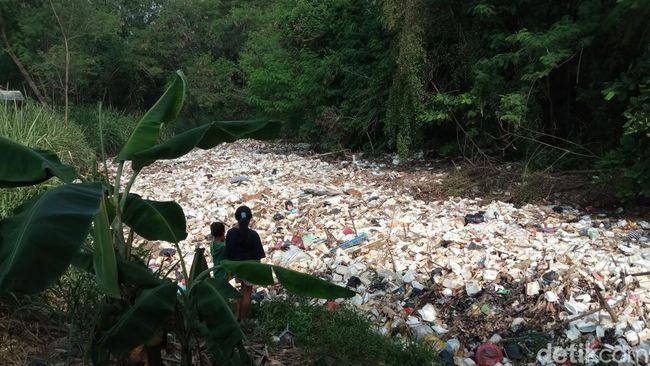 Kabupaten Cirebon - Sampah menumpuk di sungai Desa Pengarengan, Kecamatan Pangenan, Kabupaten Cirebon. Ada berbagai jenis sampah yang menumpuk di aliran sungai tersebut.