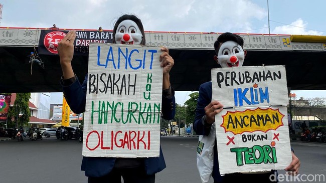 Bandung - Massa aksi yang tergabung dalam Walhi Jabar dan BEM KEMA Unpad berdemonstrasi di Taman Cikapayang, Dago, Kota Bandung. Mereka mengkritisi Sungai Citarum.