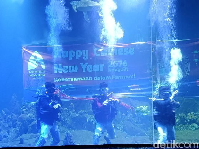 Pangandaran - Momen perayaan tahun baru Imlek 2025 di Pangandaran ada fenomena tidak biasa. Aquarium Indonesia merayakannya dengan memperlihatkan pertunjukan Kungfu dalam air