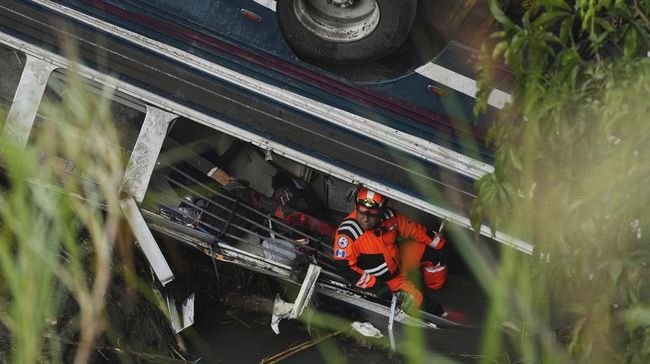 Guatemala - Sebuah bus terjun ke sungai di Guatemala City, Senin (10/2/2025) waktu setempat. 51 orang penumpang tewas dalam kecelakaan tersebut.