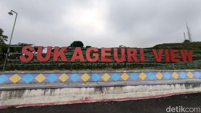 Sebuah tulisan besar "Sukageuri View" menyambut setiap pengunjung di pintu masuk. Latar perbukitan hijau yang ditanami aneka sayuran menambah kesan alami dan menyegarkan.