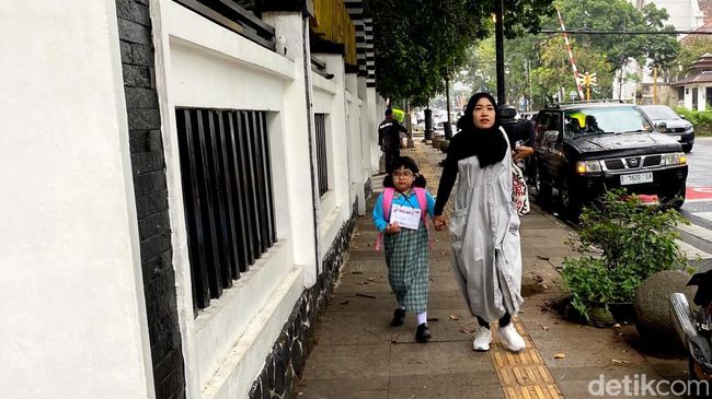 Bandung - Ratusan anak yang merupakan siswa kelas 1 berbondong-bondong mendatangi sekolahnya di SDN 0001 Merdeka. Mereka antusias menyambut hari pertama di sekolah baru.