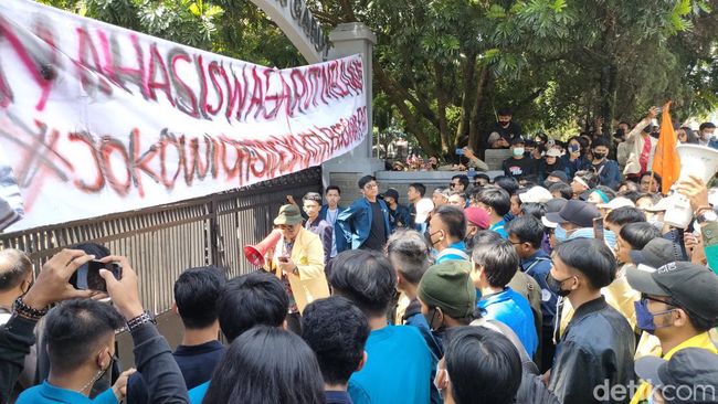 "Ada yang bilang Presiden akan tiga periode. Itu jelas kita tolak," ungkap salah seorang mahasiswa yang melakukan orasi.