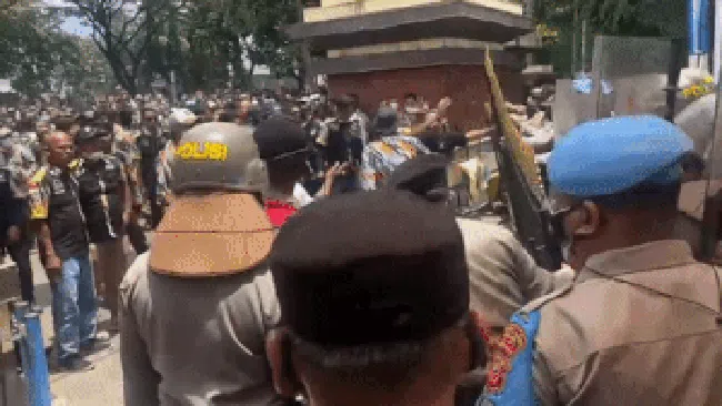 "Bahwa setelah mendengar orasi-orasu tersebut, massa GMBI yang ada di depan Polda Jabar menjadi tidak terkendali," ucap Jaksa Penuntut Umum (JPU) Kejati Jabar Hayomi Saputra.