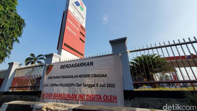 Petugas yang memasang spanduk masih sama dengan yang memasang spanduk serupa di SPBU Cikidang. Tulisan dalam spanduk juga sama dengan yang sebelumnya. "Berdasarkan, Penetapan Pengadilan Negeri Cibadak, Nomor : 378/Pen.Pid/2022/PN Cbd tanggal 8 Juli 2022. Tanah dan Bangunan Ini Disita Oleh Dittipideksus Bareskrim Polri".