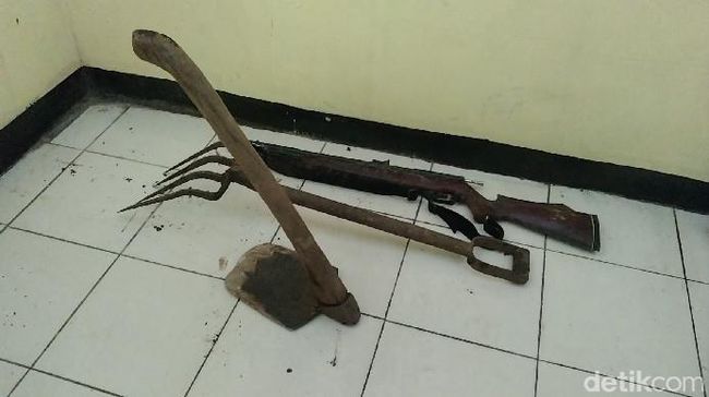 Kapolsek Maja Iptu Kenedy Joko Lelono mengatakan, barang-barang tersebut digunakan pelaku untuk menghabisi korban dengan cara membacok hingga menusuknya.