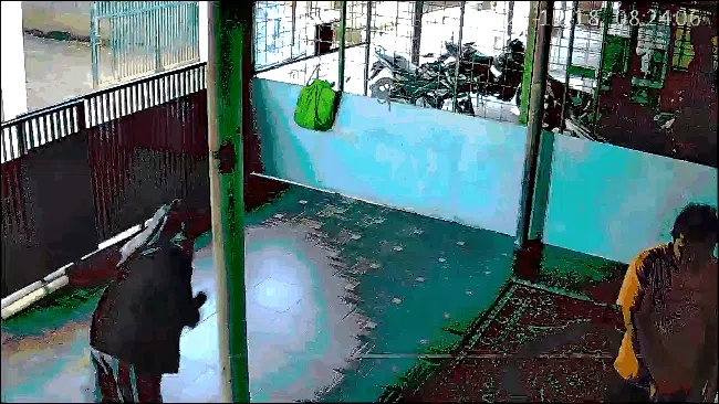 Berdasarkan rekaman CCTV yang diambil polisi dari lokasi kejadian, terlihat Rifky dan Nani sempat berada di teras. Tersangka Rifky mengenakan celana panjang dengan kaos berwarna kuning.