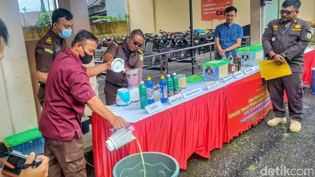 Pantauan detikJabar, sejumlah barang bukti narkotika langsung diblender petugas Kejari. Kemudian terlihat sejumlah minuman keras turut dihancurkan.
