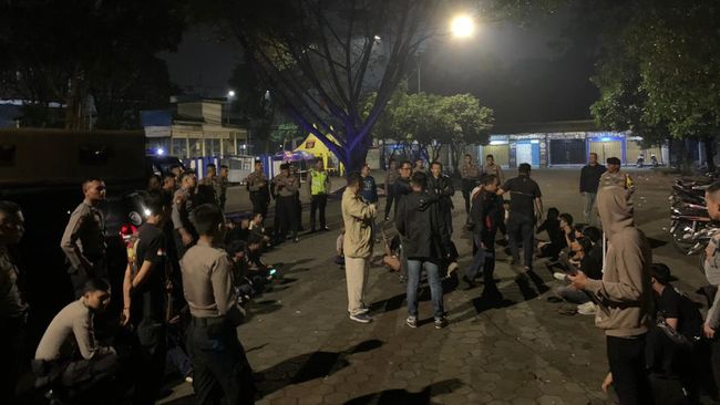 Polisi mengamankan 29 anggota XTC yang sedang pesta miras di area parkir Stadion Sidolig, Kota Bandung, pada Sabtu (14/1/2023) malam.