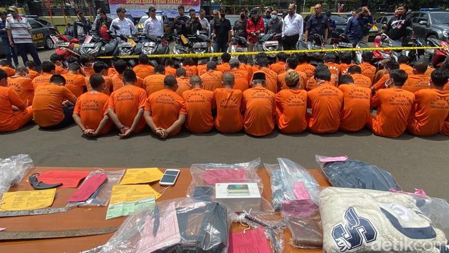 Dalam kasus ini, 12 unit sepeda motor, alat komunikasi, dan sejumlah senjata tajam dari mulai pisau, badik, hingga samurai disita polisi. Sedangkan modus yang dilakukan para tersangka dalam aksinya beragam.