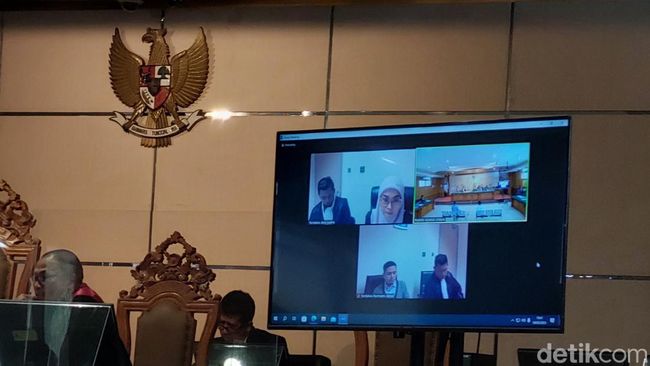 Sidang kasus suap hakim Mahkamah Agung (MA) kembali digelar di Pengadilan Negeri Tipikor Bandung, Senin (6/3/2023). Dalam sidang ini, terdakwa Desy Yustria dan Nurmanto Akmal yang merupakan PNS MA hadir secara daring di rutan KPK. Sementara itu, perangkat persidangan dan saksi hadir secara langsung di Ruang Sidang Kusumaatmaja PN Tipikor Bandung.
