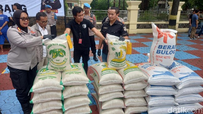 Dari hasil pengungkapan tersebut, polisi berhasil mengamankan barang bukti diantaranya 175 karung beras Bulog ukuran 50 kilogram, 28 karung beras merek mangga ukuran 25 kilogram, 83 karung beras merek MJ ukuran 25 kilogram, ratusan karung kemasan, serta berbagai peralatan produksi seperti timbangan elektrik, mesin jahit karung dan sekop.