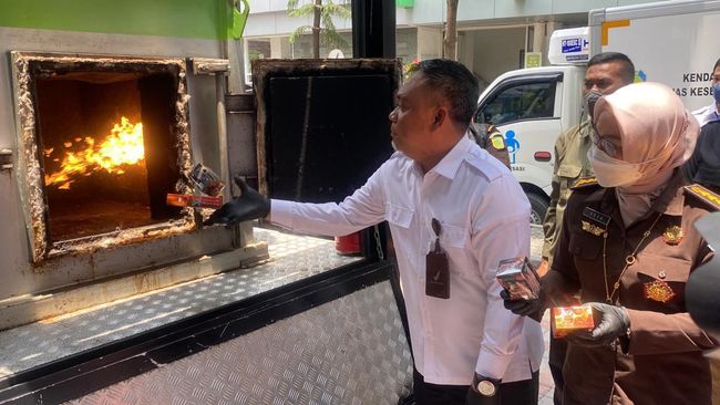 Barang bukti tersebut dimusnahkan dengan cara dibakar menggunakan mesin incinerator yang ada di Kantor Balai Besar POM Jalan Pasteur, Kota Bandung, Kamis (9/3/2023).