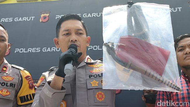 Golok kecil itu, ditampilkan dalam kegiatan jumpa pers yang digelar polisi terkait kasus tersebut di Mako Polres Garut, Jalan Jenderal Sudirman, Kecamatan Karangpawitan, Garut, Kamis (27/4/2023) pagi tadi.