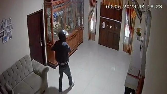 Dalam rekaman CCTV yang viral itu terlihat dengan jelas maling yang mengenakan jaket hitam serta helm berwarna hitam beraksi menggasak barang-barang berharga di dalam rumah. Aksi tersebut terjadi pada Selasa (9/5).