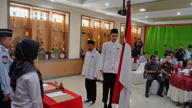 Dua narapidana kasus terorisme Muhamad Yusuf bin Abdul Halim serta Luigi Juliani berikrar setia NKRI. Pembacaan ikrar setia NKRI itu dilakukan di Lapas Kelas IIA Subang, Selasa (23/5/2023).