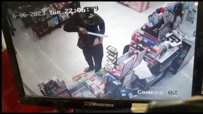 Peristiwa perampokan itu terjadi pada Selasa (6/6/2023) sekitar pukul 22.06 WIB. Rekaman CCTV perampokan itu viral di media sosial. Pelakunya mengenakan pakaian serba hitam termasuk topi yang dipakainya. Kemudian ia memegang sebilah golok sambil berdiri di depan kasir.
