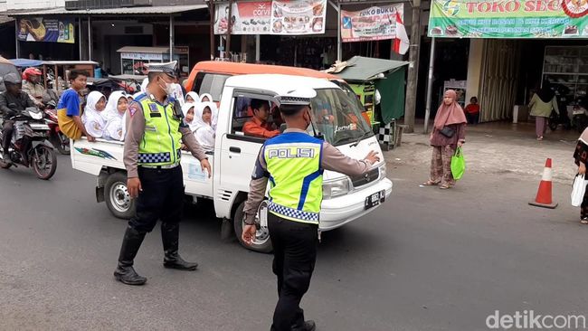 Kemudian ada sepasang pelajar SMP yang nekat berkendara tanpa pelindung kepala dan tidak memiliki Surat Izin Mengemudi (SIM). Polisi juga menghentikan kendaraan bak terbuka yang mengangkut manusia.
