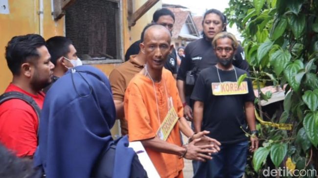 Pantauan detikJabar, tersangka Asep dihadirkan dalam rekonstruksi yang dilakukan oleh Satreskrim Polres Ciamis, Rabu (13/9/2023). Rekonstruksi itu dilakukan di rumahnya Dusun Warung Wetan, Desa Imbanagara, Kecamatan Ciamis, Kabupaten Ciamis.