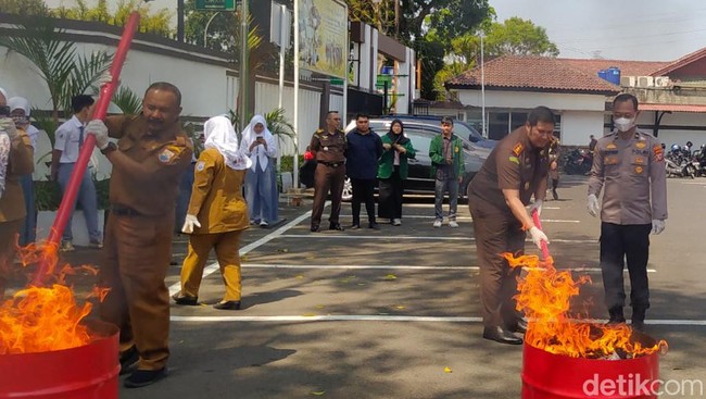Asap hitam mengepul dari Kantor Kejaksaan Negeri Cimahi. Ternyata asap itu berasal dari tong yang digunakan sebagai wadah membakar berbagai barang bukti tindak kejahatan.