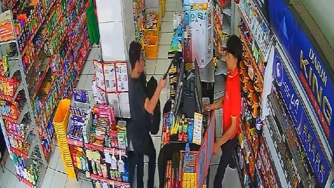 Aksi pelaku ini terekam kamera CCTV minimarket dan viral di sejumlah media sosial. Dari rekaman tersebut terlihat pelaku yang mengenakan kaos dan celana hitam seraya menggunakan masker mendatangi kasir minimarket dengan membawa sebotol air mineral.