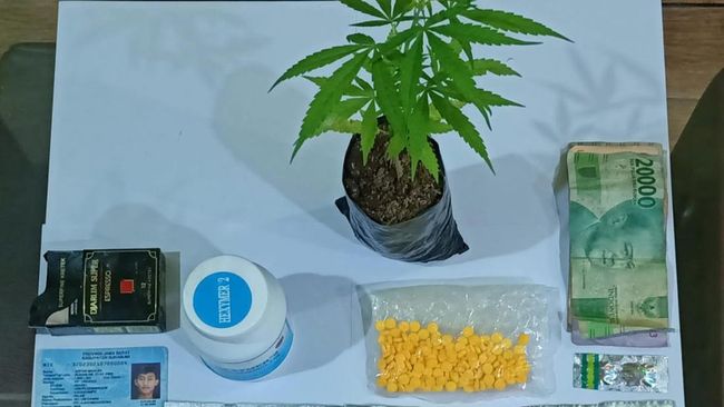 "Memang betul, dari pengungkapan ini, kami mengembangkan kembali dengan melakukan penggeledahan terhadap rumah terduga pelaku dan menemukan sejumlah barang bukti lainnya berupa 172 butir obat keras terbatas jenis Hexymer dan sebatang pohon ganja yang ditanam terduga pelaku di sebuah pot yang yang disimpan di pinggir rumahnya," kata Yudi.