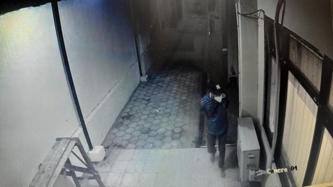 Dalam rekaman CCTV, pelaku diketahui datang seorang diri. Dia menggunakan pakaian belang berwarna biru dan topi bertuliskan 'NY' warna hitam. Dia juga tampak menggunakan masker.