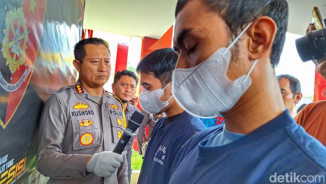Keduanya nampak lesu saat dihadirkan di Mapolresta Bandung, Selasa (5/3/2024). Mereka hanya tertunduk meratap tanah dengan tangan terborgol.