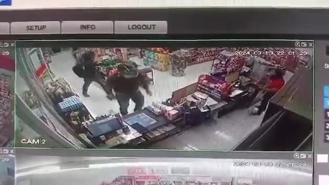 Aksi dua perampok itu terekam CCTV. Dalam video yang beredar, terlihat dua pelaku itu tiba-tiba masuk ke dalam minimarket lalu menodongkan benda seperti senjata tajam jenis golok.