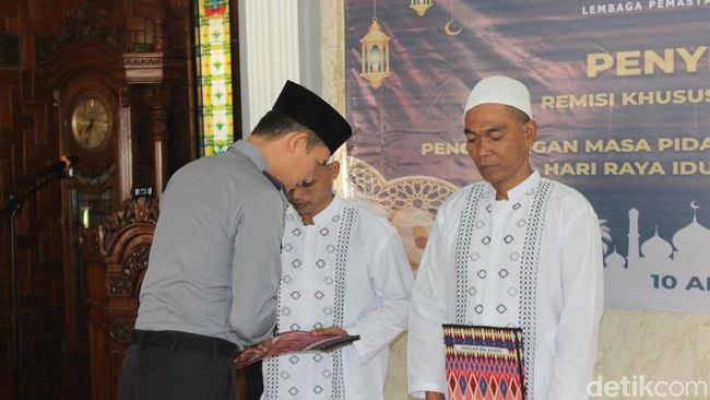 "Iya ada dua narapidana yang bebas setelah mendapatkan remisi. Mereka kini kembali bisa berkumpul dengan keluarga di momen hari raya ini," tuturnya.
