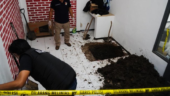 "Untuk bau, itu dia (pelaku) tidak ada upaya apa-apa. Memang karena di dalam tanah, dan kedap bau karena ditutup keramik itu rapat banget jadi tidak tercium siapapun. Nah bau menyengatnya itu baru tercium setelah kita bongkar keramiknya," ujar Dimas.
