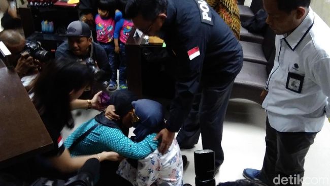 Petugas pun membuka pintu yang membatasi ruang keduanya. Saat pintu dibuka, Entin langsung memeluk ibunya yang sudah menunggu. Keduanya berpelukan sambil menangis.
