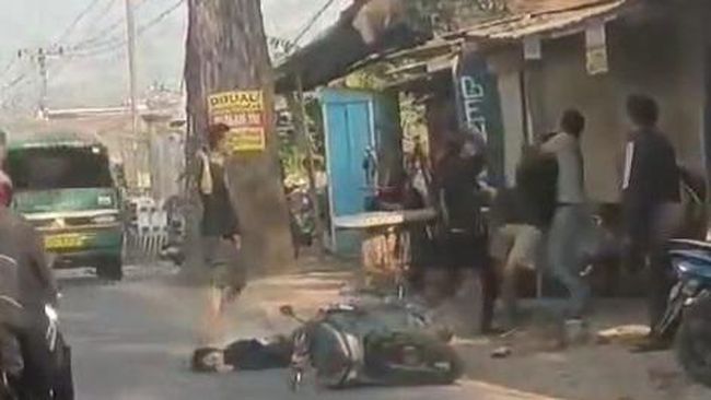 Dari video yang diterima detikJabar pada Jumat (21/6/2024), terlihat beberapa orang berlarian di pinggir jalan. Kemudian nampak dua orang tengah berkelahi dan beberapa orang memisahkan perkelahian tersebut.