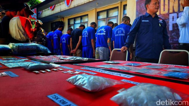 Barang bukti yang berhasil disita dalam operasi tersebut mencakup 375,47 gram sabu senilai sekitar Rp500 juta, 143,22 gram ganja, dan 1.581 butir obat keras terbatas. Pantauan detikJabar, dua kantong klip besar berisi kristal narkotika sabu turut diperlihatkan di meja barang bukti.