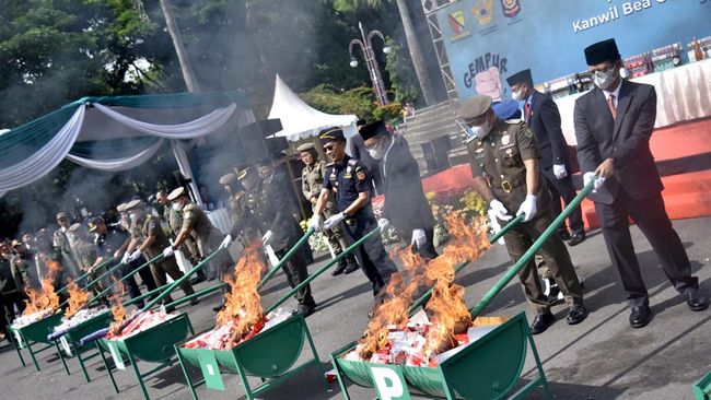 "Berdasarkan data yang ada, jadi saat ini yang di hasil penyitaan yang kemudian dimusnahkan, pertama jumlah rokok ilegal sebanyak 4.519.788 batang. Kemudian untuk minuman mengandung alkohol sejumlah 538 botol," ujar Dikky, kepada awak media.