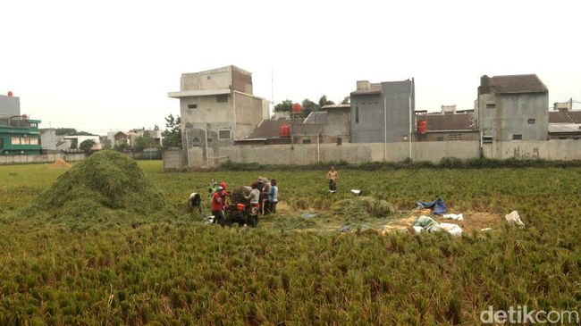 Bandung - Mesin perontok padi dan gabah digunakan petani di kawasan Rancasari, Kota Bandung. Hal itu dilakukan agar proses panen lebih cepat.