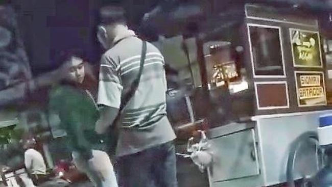 Dalam video yang beredar, tampak seorang pria berjaket gelap mendatangi pedagang. Pria tersebut tampak meminta uang kepada pedagang.