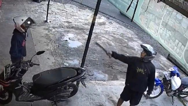 Tak hanya itu, pria tersebut juga mendekati seorang pria yang berada di dekat sepeda motor. Dia tampak marah dan mengacungkan golok ke arah korban.