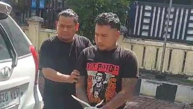 Dari video yang diterima detikJabar, Minggu (30/3), terlihat pria menggunakan jaket kulit berwarna hitam. Dia datang sambil membawa golok.