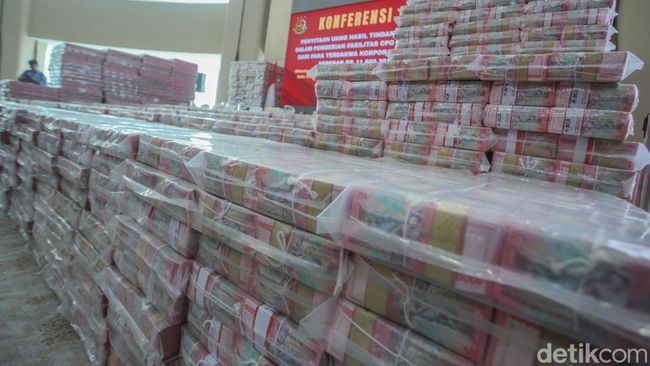 "Yang kita lihat sekarang ini, di sekeliling kita ini ada uang, ini total semuanya nilainya Rp 2 triliun. Uang ini merupakan bagian dari uang yang tadi kita sebutkan, Rp 11.880.351.802.619," ujar Sutikno.