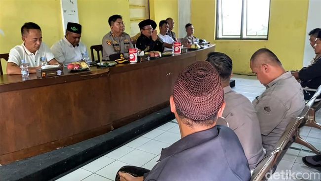 Sejumlah warga dari dua desa di Kecamatan Cidahu, Kabupaten Sukabumi, bertemu Kapolres Sukabumi AKBP Samian di Kantor Desa Tangkil, Rabu (2/7/2025). Dalam forum itu, mereka menyampaikan harapan agar perkara yang melibatkan tujuh orang yang telah ditetapkan sebagai tersangka dalam kasus perusakan Villa Ninna bisa diproses secara Retorative Justice.