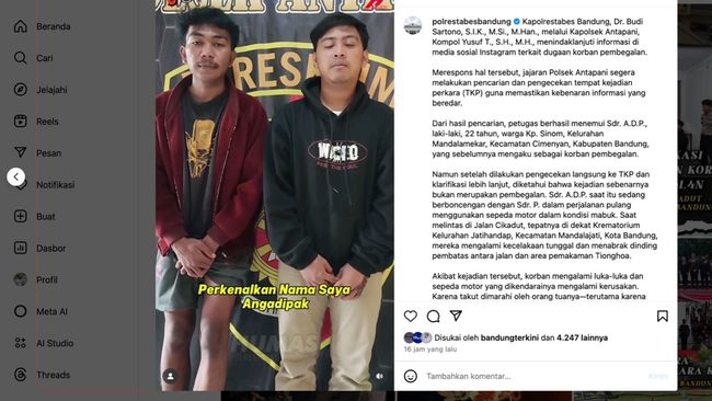Usai menjalani pemeriksaan secara intensif di Mapolsek Antapani, Angga dan temannya meminta maaf dan permintaan maaf itu dilakukannya secara terbuka di media sosial.